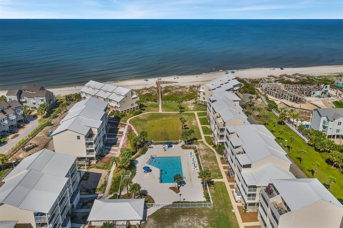 Beach access just steps away — follow the boardwalk past the pool and you’re there!